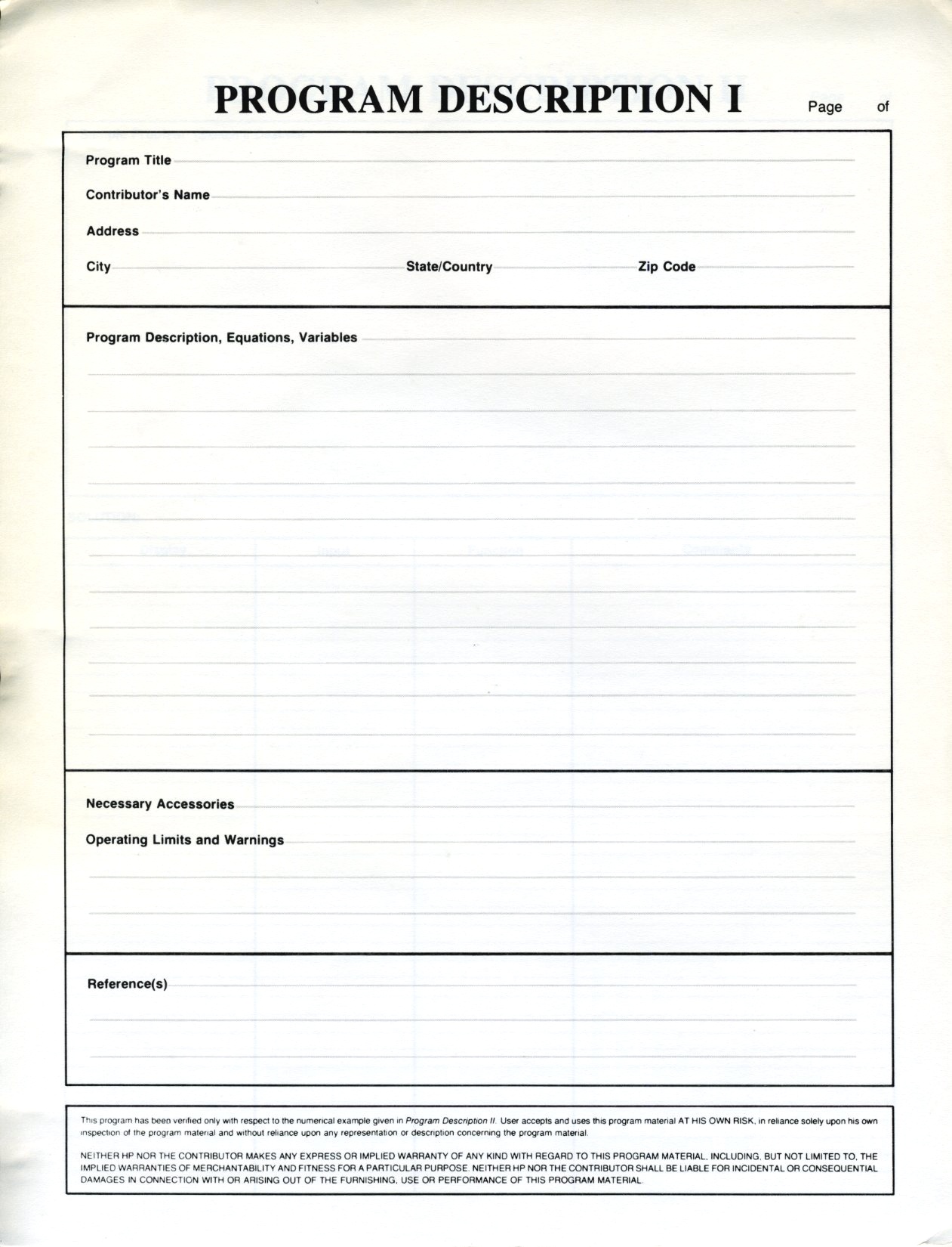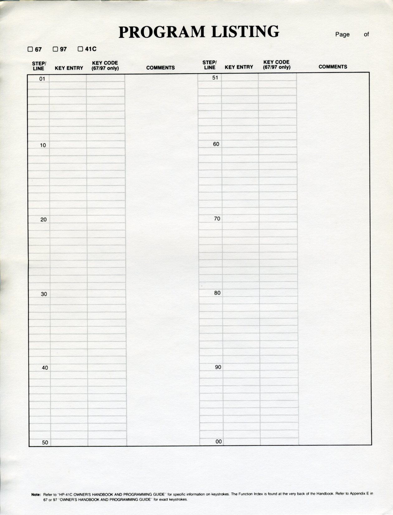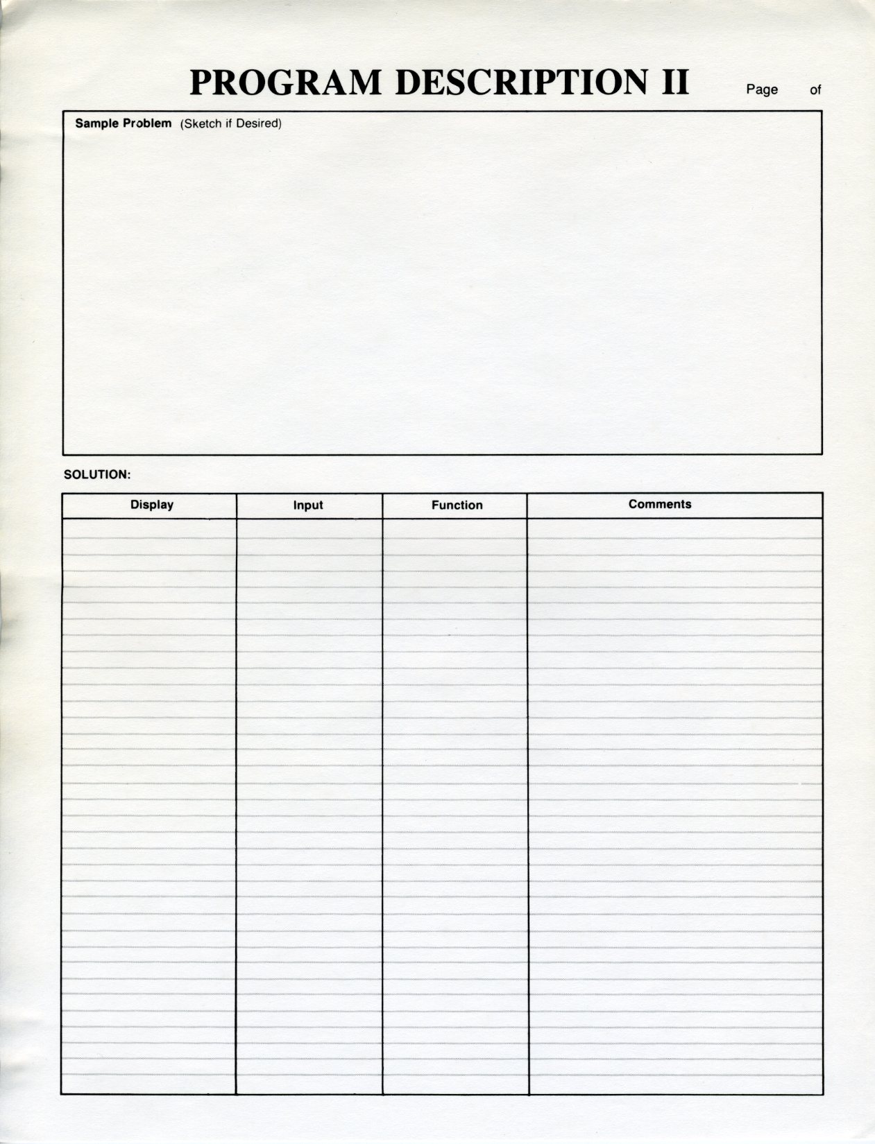 Here is a collection of forms used for writing and documenting programs for the HP programmable calculators.